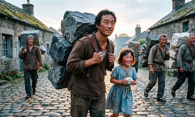 The sun hadn't yet cleared the jagged teeth of the basalt cliffs when Elias began his morning ritual. He stood before the mirror, checking the leather harness that crisscrossed his chest. It was worn supple by decades of salt and sweat. He adjusted the buckles, ensuring the iron-grey stone fastened to his small of his back was centered. It was the size of a prize-winning pumpkin and weighed exactly eighty-four pounds.