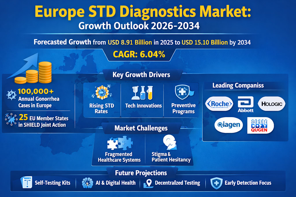 According to recent insights by Renub Research, the Europe STD diagnostics market is projected to grow from USD 8.91 billion in 2025 to USD 15.10 billion by 2034, registering a compound annual growth rate (CAGR) of 6.04% between 2026 and 2034.
