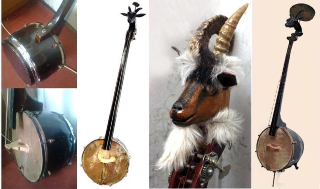 Over time, the improvised instrument began to become traditional, the details were transformed into a specially made neck, resonator and strings, although they retained a certain simplicity and roughness. Bow goats are wooden and serrated, and the neck is crowned with a carved goat's head, with with a plate-hat over the horns.
